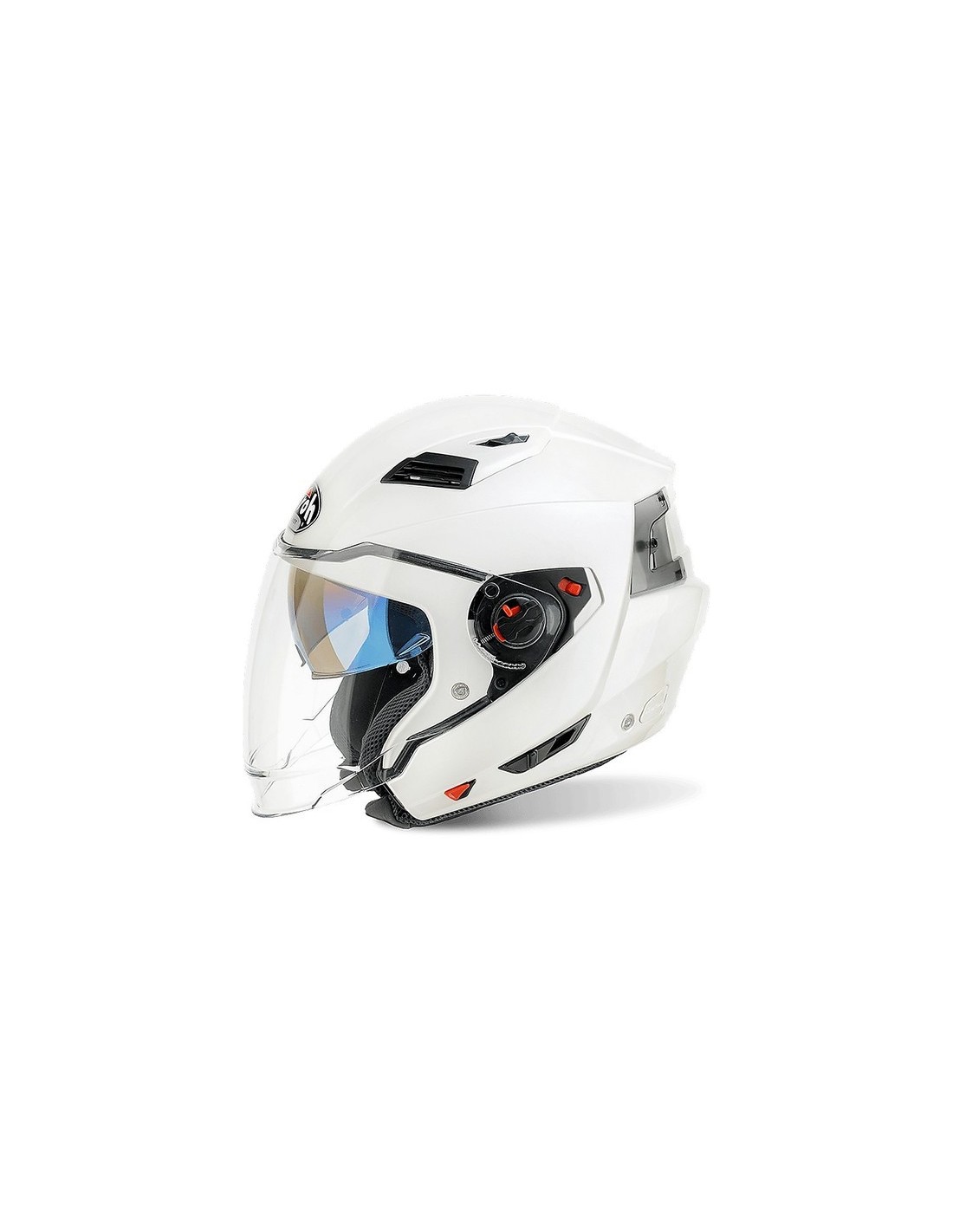 Airoh casco crossover Executive, un crossover con doppia omologazione P/J unico nel suo genere per praticità e comfort. Due alloggiamenti brevettati per ospitare in tutta facilità e sicurezza la propria mentoniera amovibile ed il proprio stop wind. In pochi secondi è possibile rimuoverne la mentoniera agendo sui suoi due pulsanti laterali, riporre la stessa nell'incavo ad incastro situato sul retro della calotta esterna ed inserire lo stop wind nell'apposito vano ricavato all'interno del polistirolo.