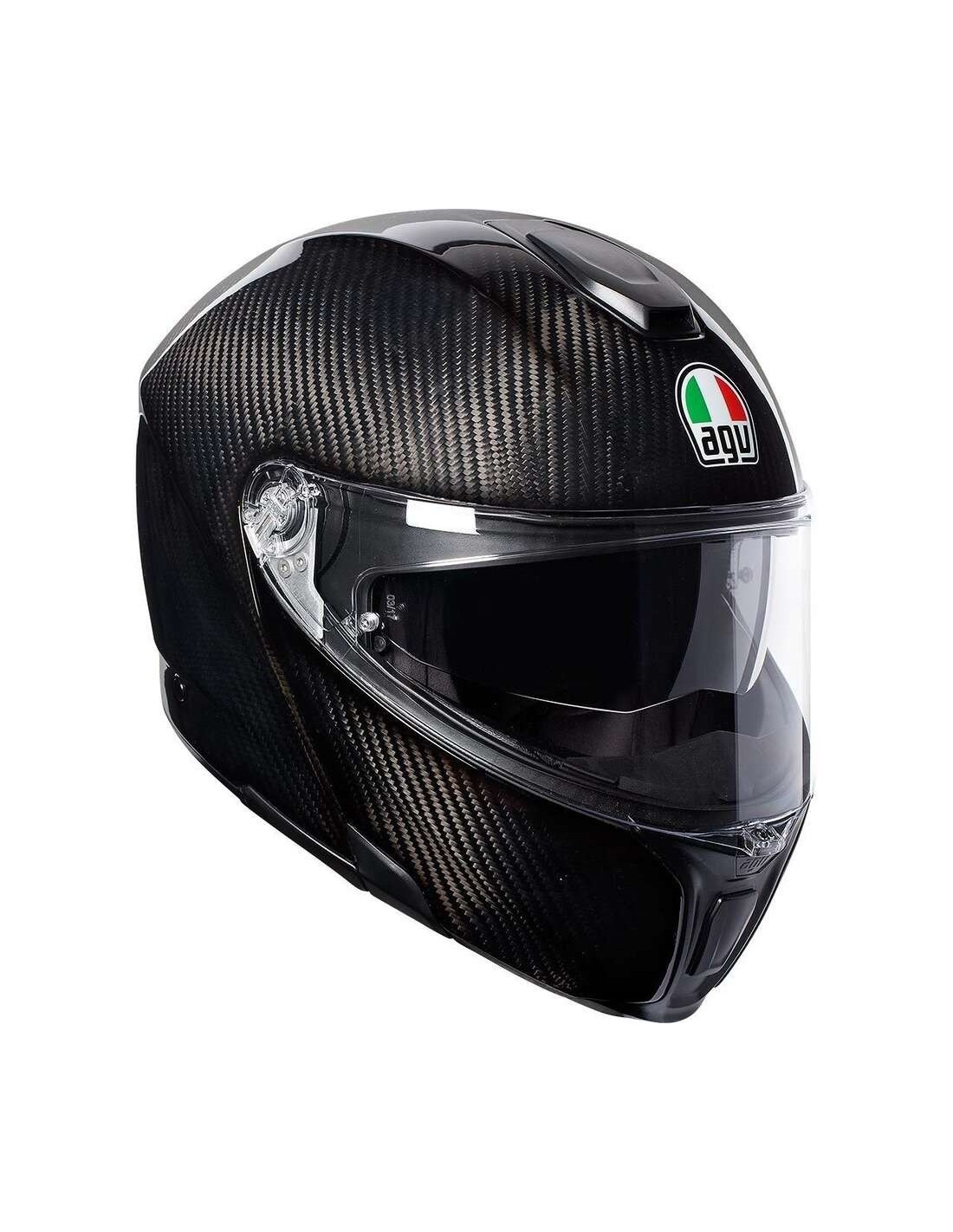 Il primo casco SportModular del mondo: la prestazione di un casco integrale insieme al comfort di un casco modulare. Completamente costruito in fibra di carbonio (sia calotta che mentoniera), questa struttura specifica raggiunge le stesse prestazioni di protezione del Pista GP R, con una costruzione incredibilmente leggera, e i più alti livelli di comfort e sicurezza. Progettato per offrire una visione orizzontale a 190° come la capacità dell'occhio umano, SportModular è stato concepito nel tunnel del vento per una superiore silenziosità, stabilità aerodinamica e ventilazione. Un casco modulare che coniuga perfettamente qualità, robustezza e protezione di un casco integrale da pista, con il confort e la praticità di un modulare da viaggio.