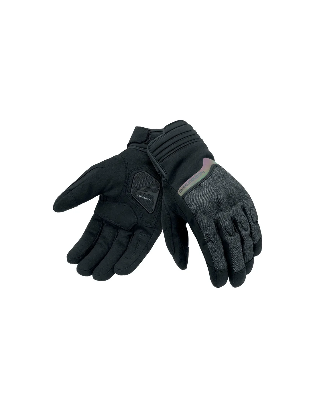 Guanto certificato moto CE invernale, dorso in denim, palmo scamosciato sintetico, 100% impermeabile e traspirante, compatibile touchscreen